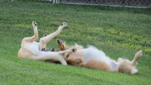 Things to watch for to signal good play skills are loose, relaxed and bouncy body language. Regular breaks in which both dogs pause and then choose to reengage. Taking turns being the dog chasing, on top, etc. A larger or more confident dog should handicap them selves in play by laying down or making themselves seem smaller and less threatening to encourage the other dog play will be safe.